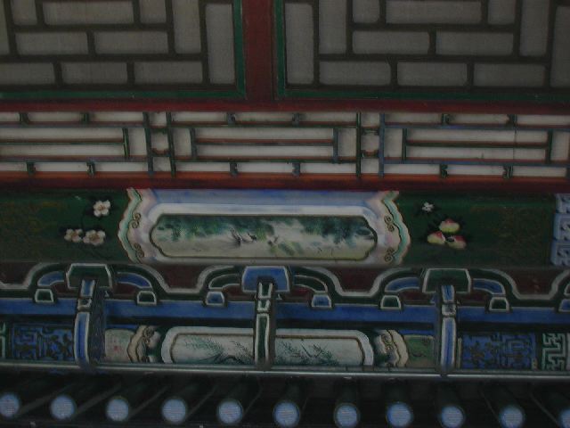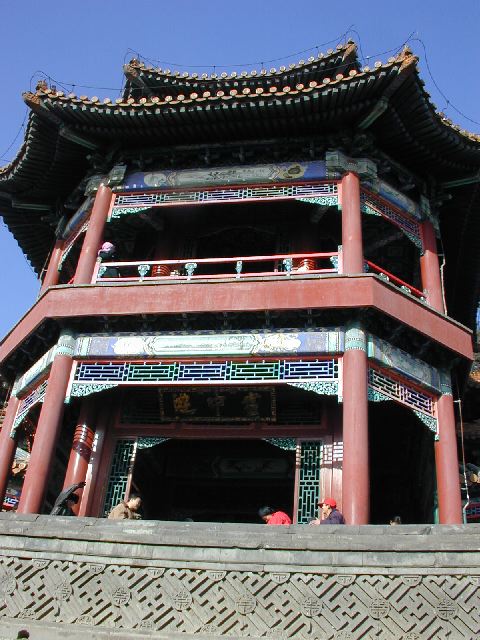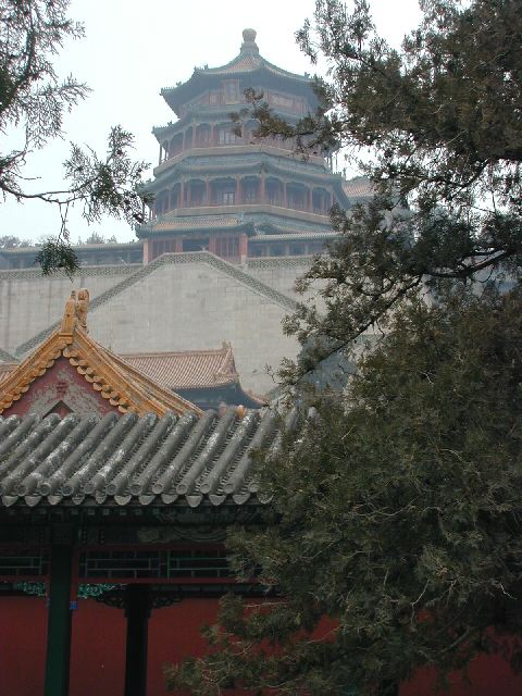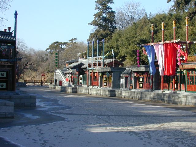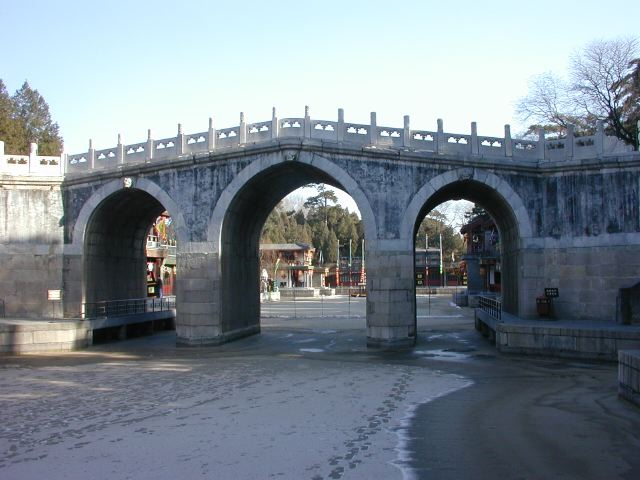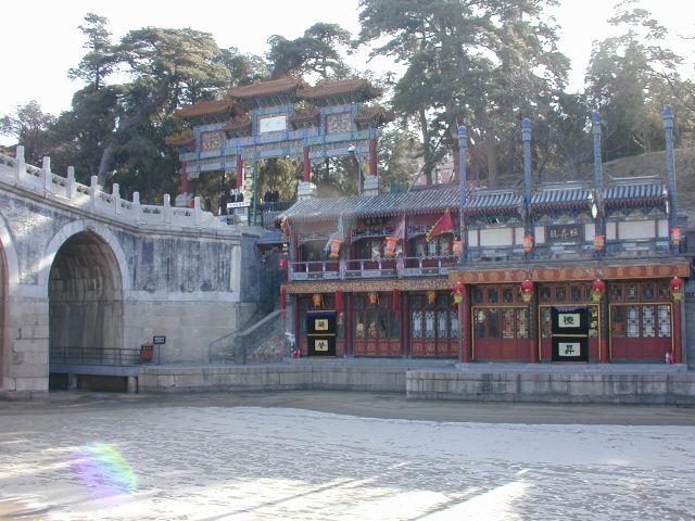 The Summer Palace consists of a very big park containing a large lake and many decorated pavilions. The current palace buildings were made for the Empress Dowager Cixi in 1888 after the original ones were destroyed by British and French troops. This area is a short bike ride from Beida and a very pleasant place to spend a morning. We went there twice with Baojue. On the first vist we walked to the far end of the lake, returning via a dyke connected by six stone bridges. On the second visit we went to Suzhou Street - a re-creation of the scenery of Suzhou - and the up the hill to the 'Cloud Dispelling Hall'