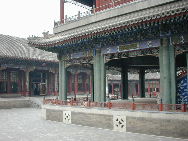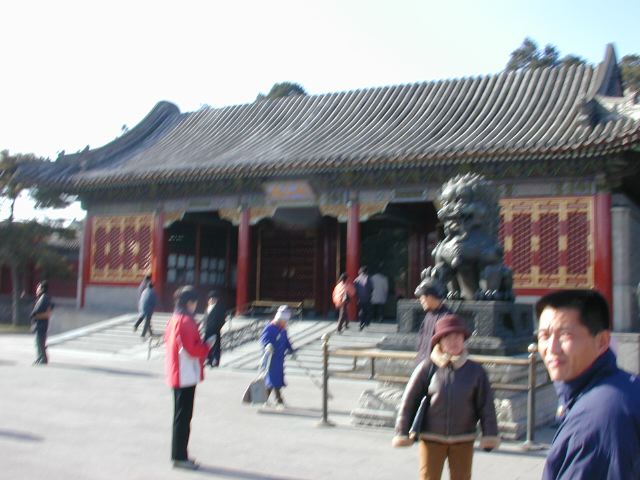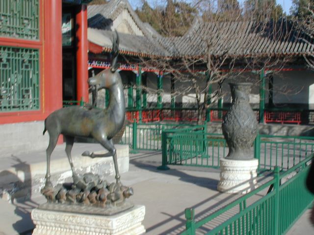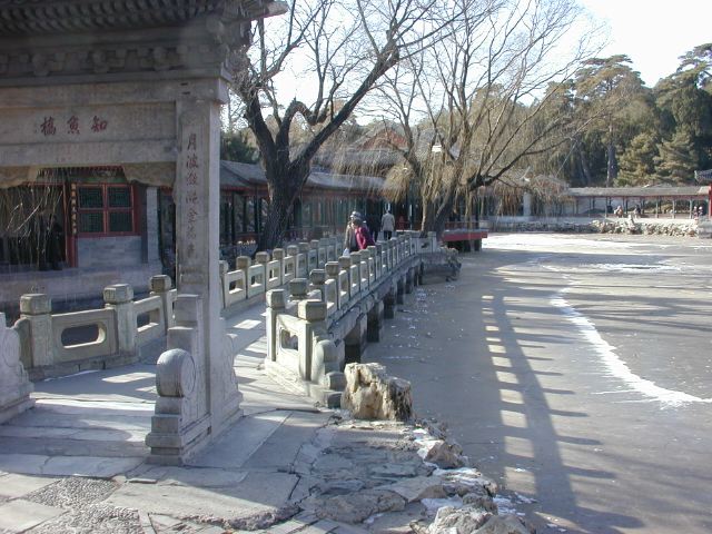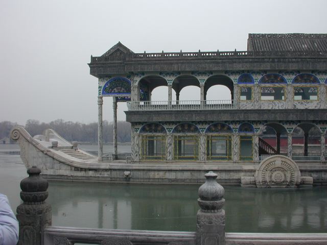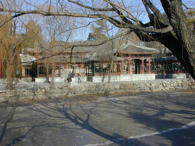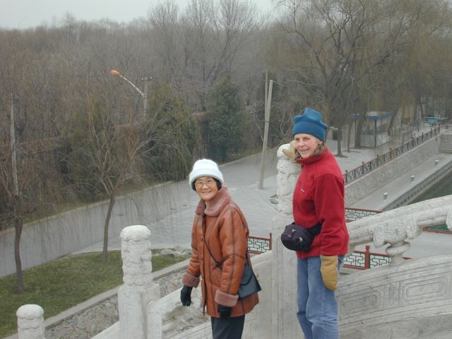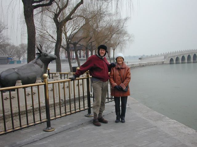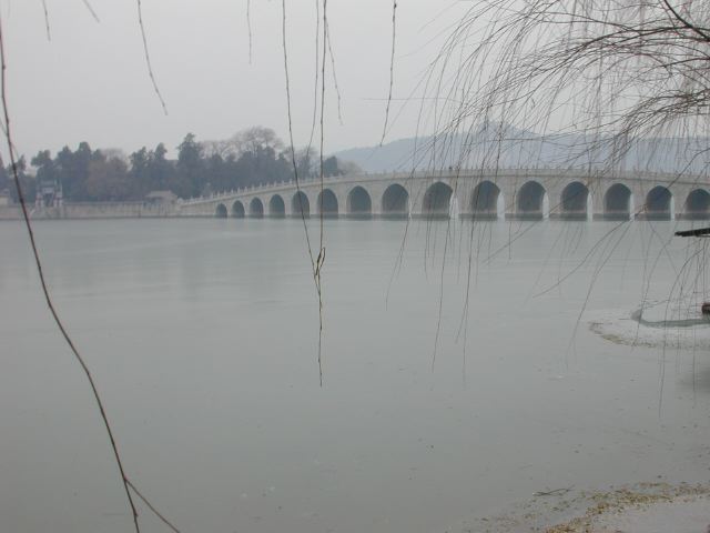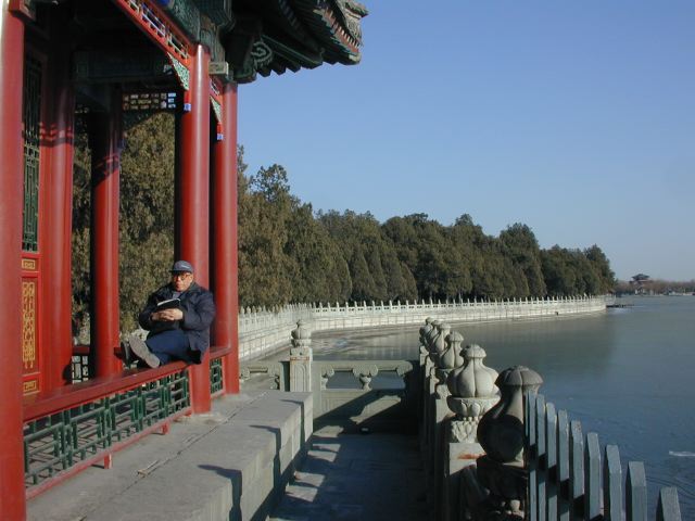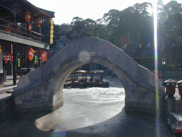The Summer Palace consists of a very big park containing a large lake and many decorated pavilions. The current palace buildings were made for the Empress Dowager Cixi in 1888 after the original ones were destroyed by British and French troops. This area is a short bike ride from Beida and a very pleasant place to spend a morning. We went there twice with Baojue. On the first vist we walked to the far end of the lake, returning via a dyke connected by six stone bridges. On the second visit we went to Suzhou Street - a re-creation of the scenery of Suzhou - and the up the hill to the 'Cloud Dispelling Hall'